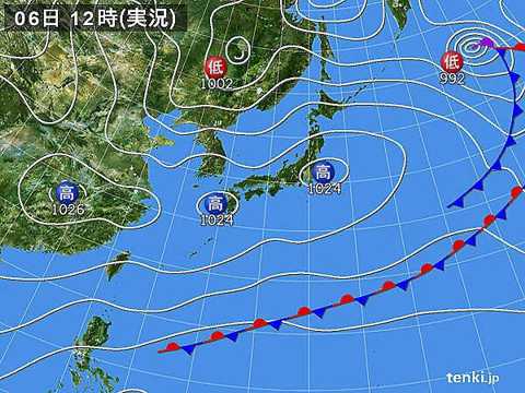 | 晴れ。東の風、白雲より上空は北西。天気図(tenki_jp) | |||||